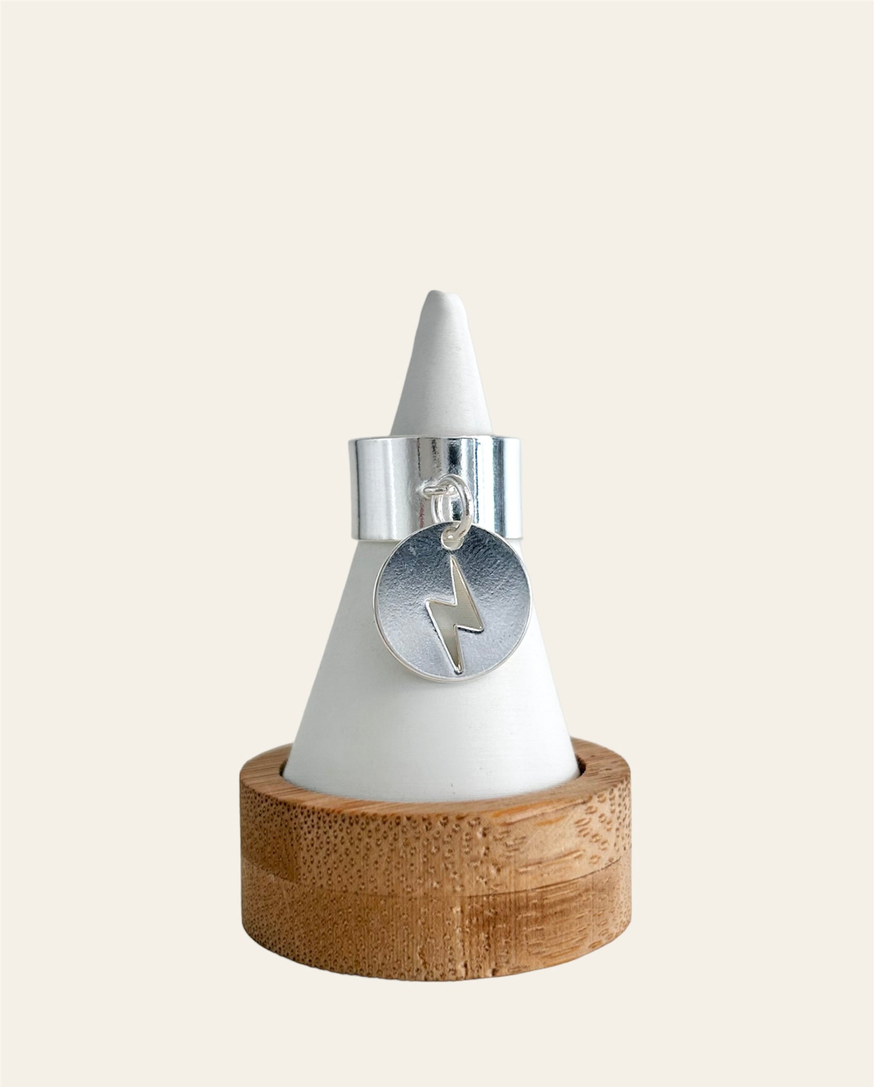 Bague breloque en plaqué argent 10 microns, ajustable, insensible à l’eau.
